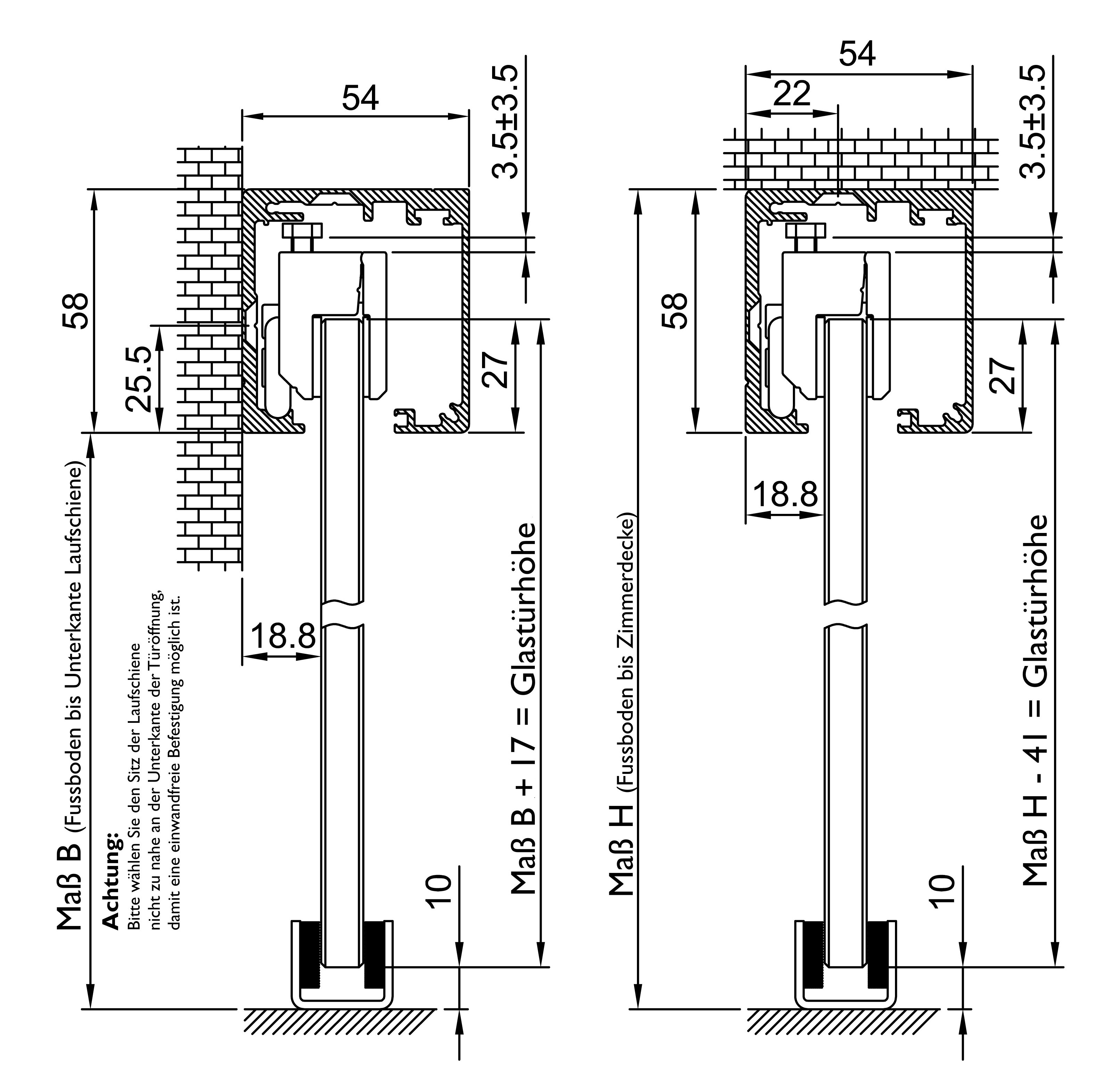 - Einbaumaße Glastür Fangstopper 2000 / 40000